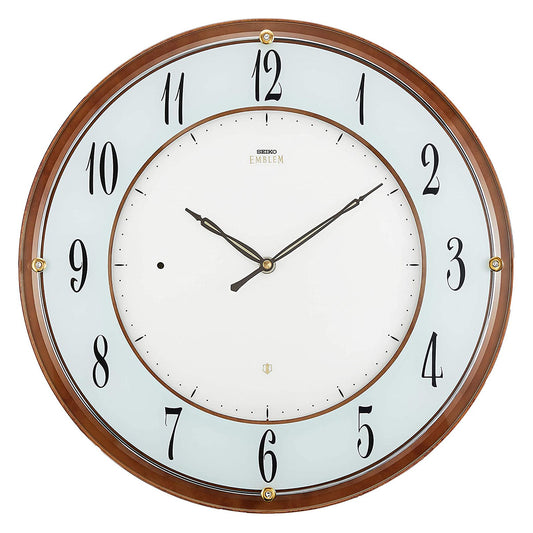 [SEIKO EMBLEM] セイコーエムブレム 掛時計 HS558A < ガラスと木のナチュラルモダンな掛時計 濃茶木地 電波 アナログ >