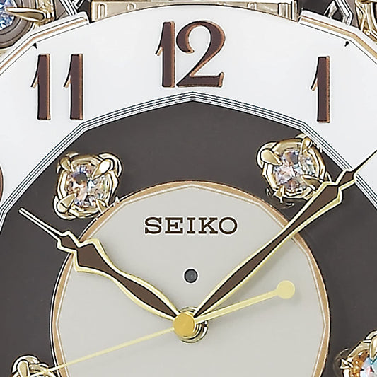 [SEIKO] セイコー クロック 掛時計 からくり 40曲 メロディ 回転飾り RE578B < 薄金色 パール 電波時計 アナログ >