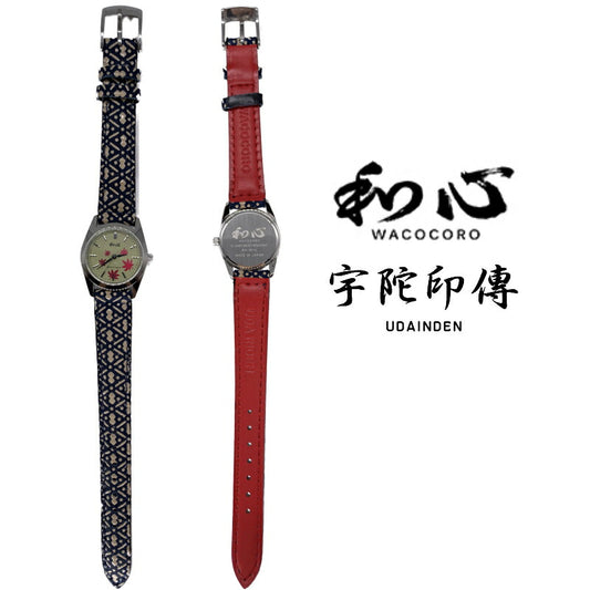 [WACOCORO] 和心 腕時計 宇陀印傳 UDAINDEN WA-001L-K < レディース 瓢箪 和柄 レッド ゴールド 日本製 >