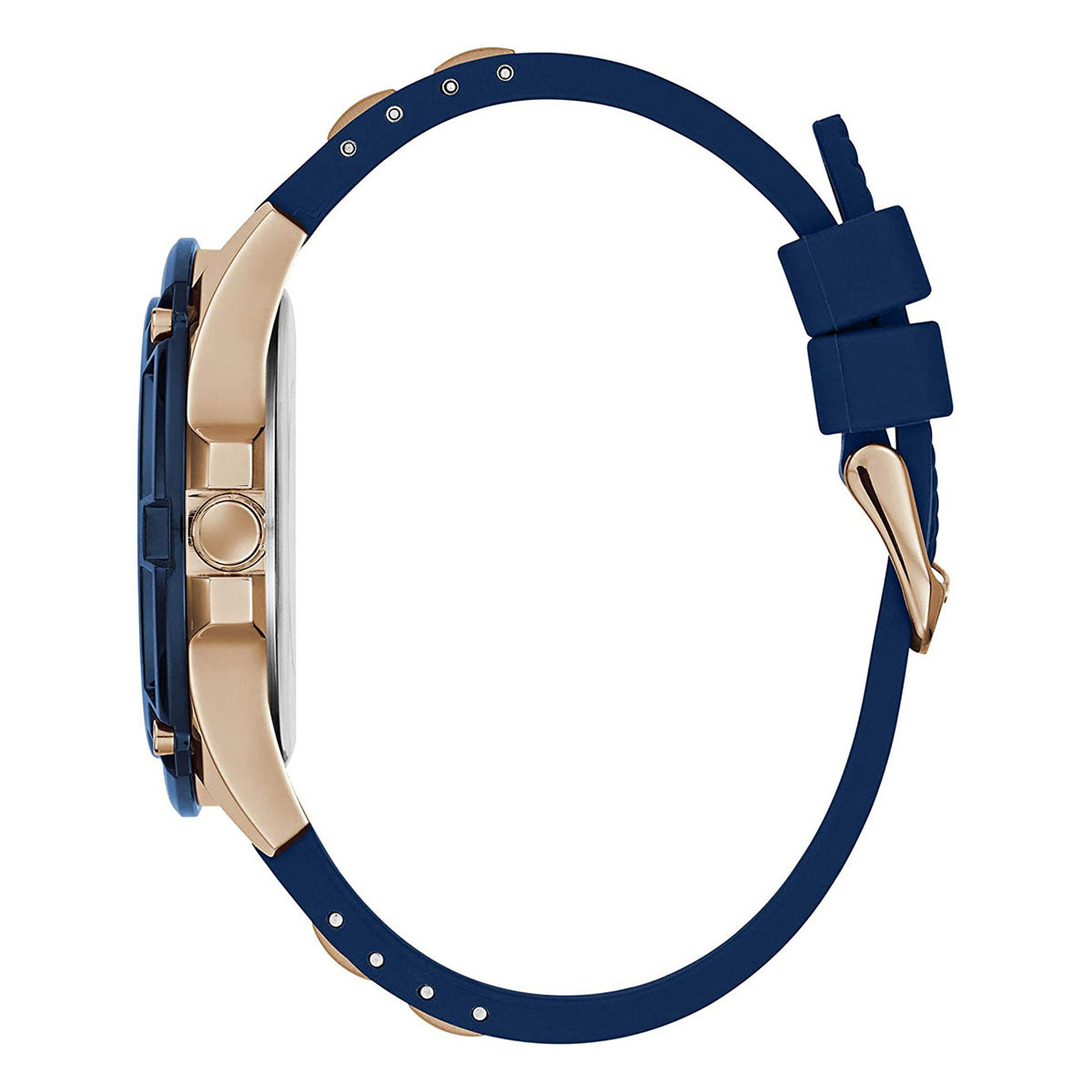 ブルーのベゼルを採用したローズゴールドトーンのケースにマルチファンクション機能を内蔵。ローズゴールドトーンのステンレススチールを君合わせたブルーシリコンバンドは、ブレスレットの外観とシリコンの快適性を同時に実現します。