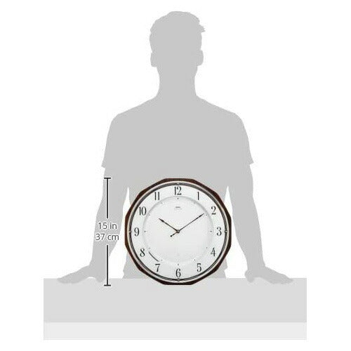 シックな木枠に視認性の高いシンプルな文字板の組み合わせ。環境にやさしい省エネ型の薄型ソーラー電波クロック。