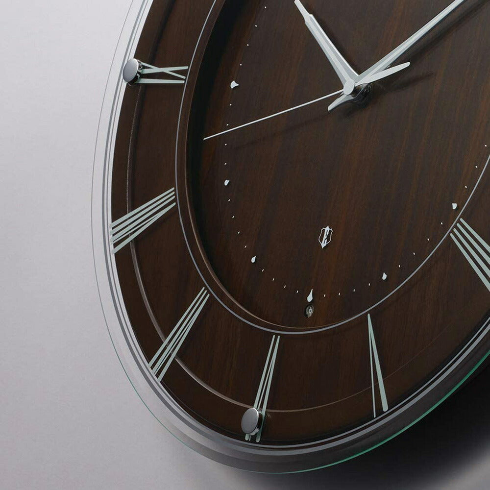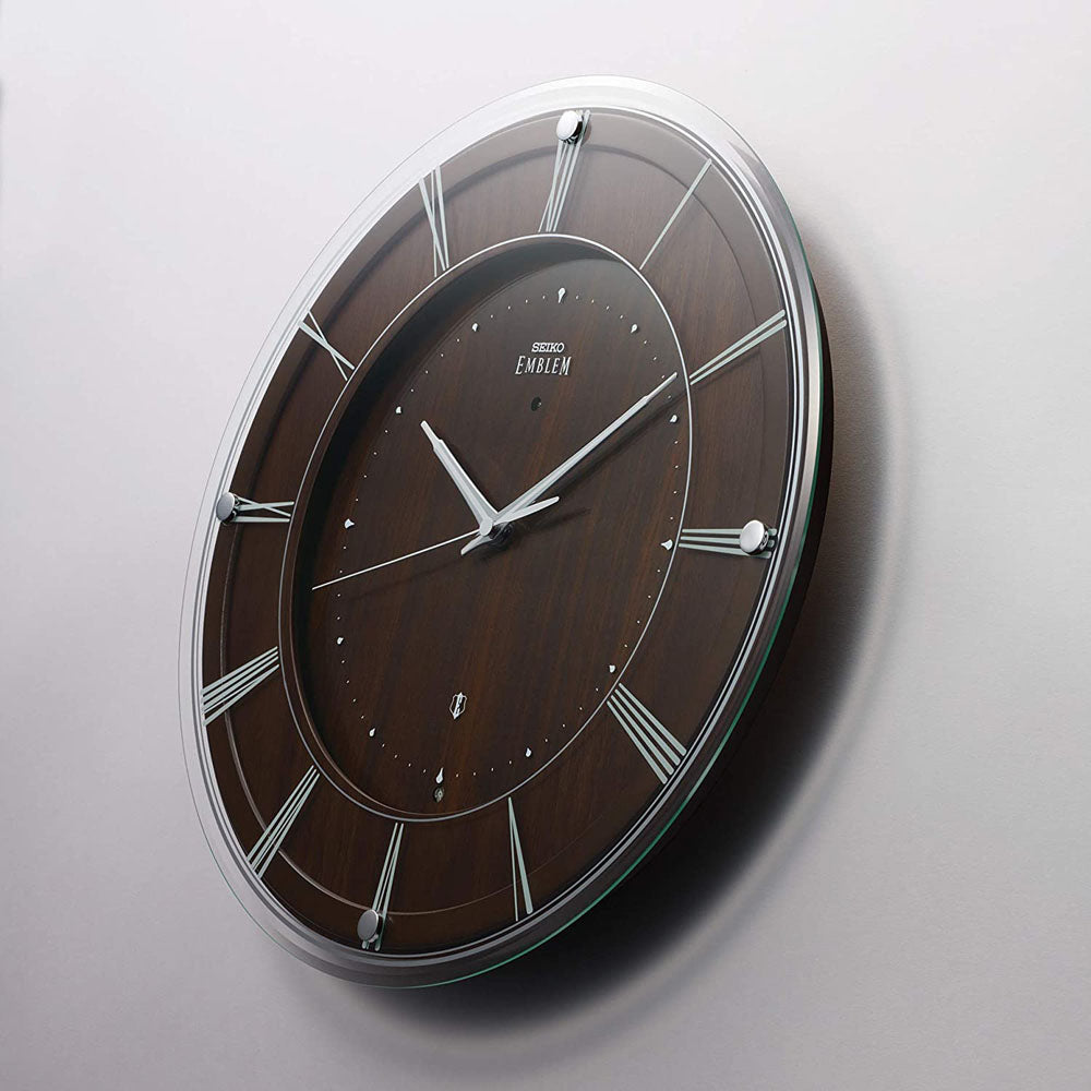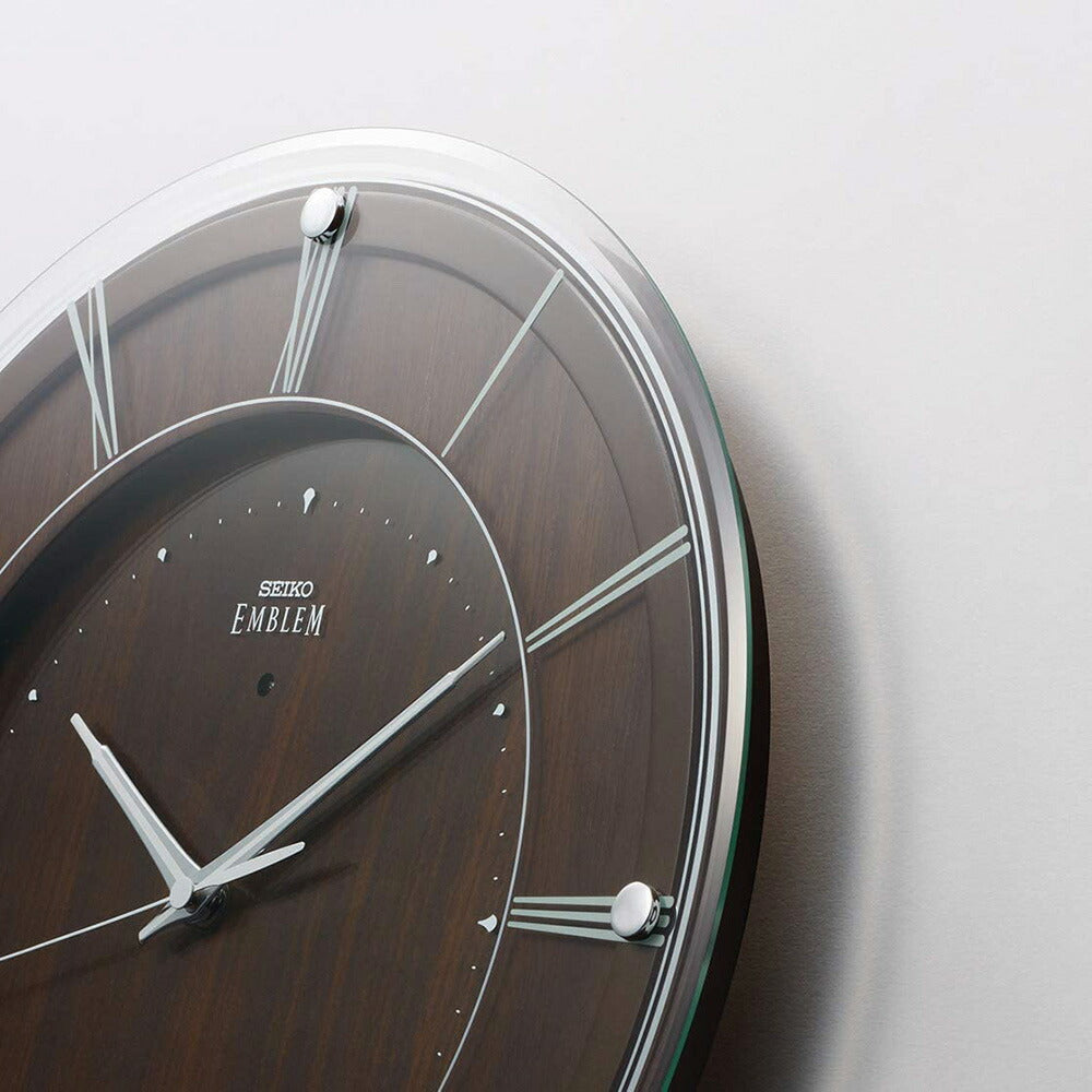 [SEIKO EMBLEM] セイコーエムブレム 掛時計 HS558A < ガラスと木のナチュラルモダンな掛時計 濃茶木地 電波 アナログ >