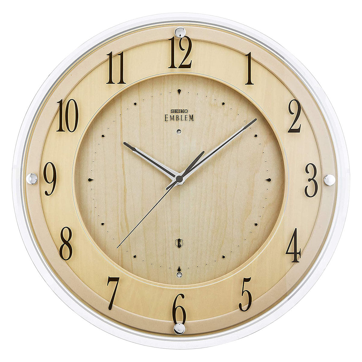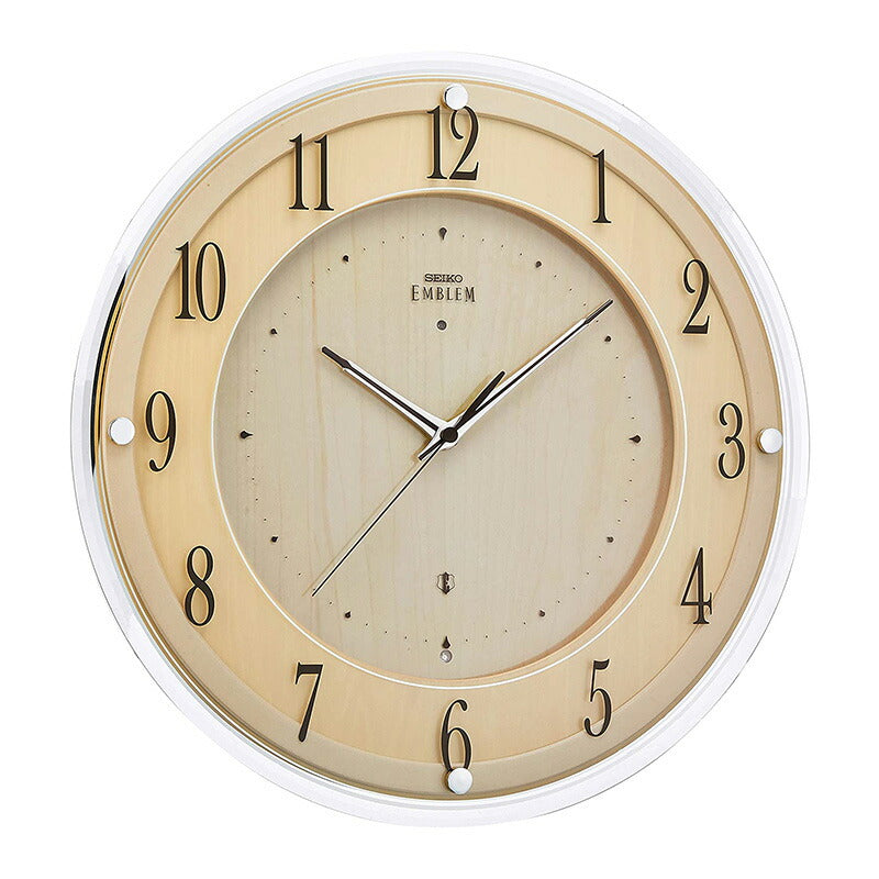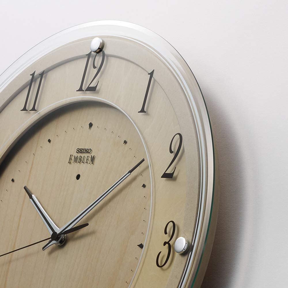 [SEIKO EMBLEM] セイコーエムブレム 掛時計 HS558B < ガラスと木のナチュラルモダンな掛時計 薄茶木地 電波 アナログ >