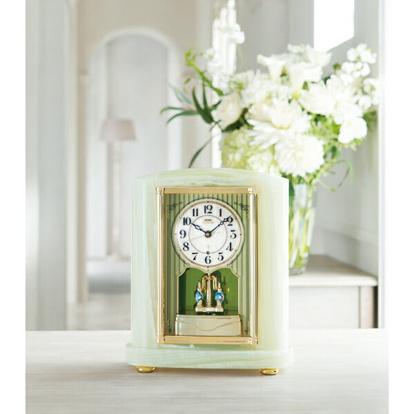 [SEIKO EMBLEM] セイコーエムブレム 置時計 HW521M < オニキス枠 回転飾り 電波時計 >