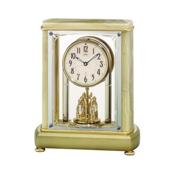 [SEIKO EMBLEM] セイコーエンブレム 置時計 天然石 オニキス 16曲 メロディ 一方向回転飾り HW597M < 電波時計 アナログ >