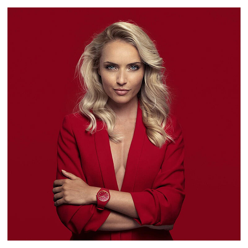 ファッションに欠かせないカラー「赤」は、コーディネートに華やかさ、大人らしさをアクセントとして加えることができます。多種多様な「赤」の中から今季アイスウォッチが選択したのは、暗くなりがちな秋の装いにも映える艶やかな真紅。深みのある真っ赤な色味にイエローゴールドのパーツを組み合わせることで、エレガントな女性らしいモデルが誕生した。ネイビー、ブラウン、ブラックといった秋のファッションのメインになるカラーとの相性はもちろん、色気のある真っ赤なワントーンコーデにも。着けるだけでコーディネートが上品に仕上がるファッションウォッチとなっています。ケース&ベルト一体型のシリコンラバーは、着けているのも忘れてしまうかのような滑らかな質感。急な天候の変化も気にならない10気圧防水でストレスフリーな機能面も充実。スモール(34mm)とミディアム(40mm)の2サイズ展開。