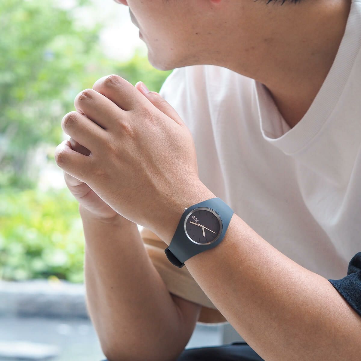 「 アイス エニー 」は、無彩色カラーのワントーンウォッチに、ブラッシュド加工が施されたシルバーの"ice"ロゴ"、針とインナーリングを配したシンプルなコレクション。