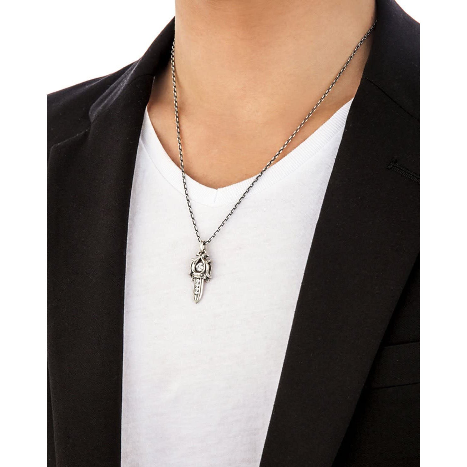 ボリュームのあるリッチなデザインと、動くたびにキラキラと揺れるダンシングストーンが魅力的なメンズネックレス。ダイヤモンドに近いキュービックジルコニアに独自のクロスフォーカットを入れることで美しい十字の輝きが現れます。地金は純度の高いシルバー925に風合いのある燻し加工をほどこしており、ファッショナブルでクールな胸元を演出してくれます。普段使いから、特別な日のファッションにと幅広くお使いいただけます。