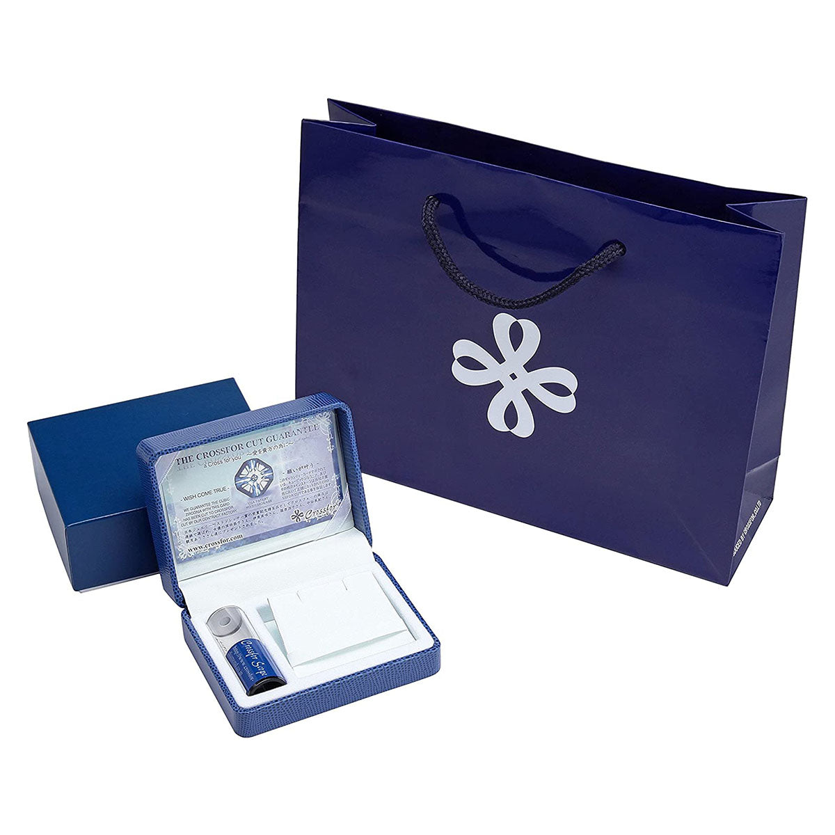 クロスフォーは「a Cross for you~愛を貴方の為に~」という意味が込められています。 ジュエリー1点につきショッピングバック、ジュエリーケース、品質保証カード、Wishカード、光学スコープが付き、大切な方へのギフトやプレゼントで人気になっています。