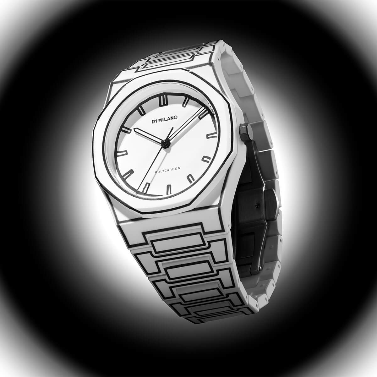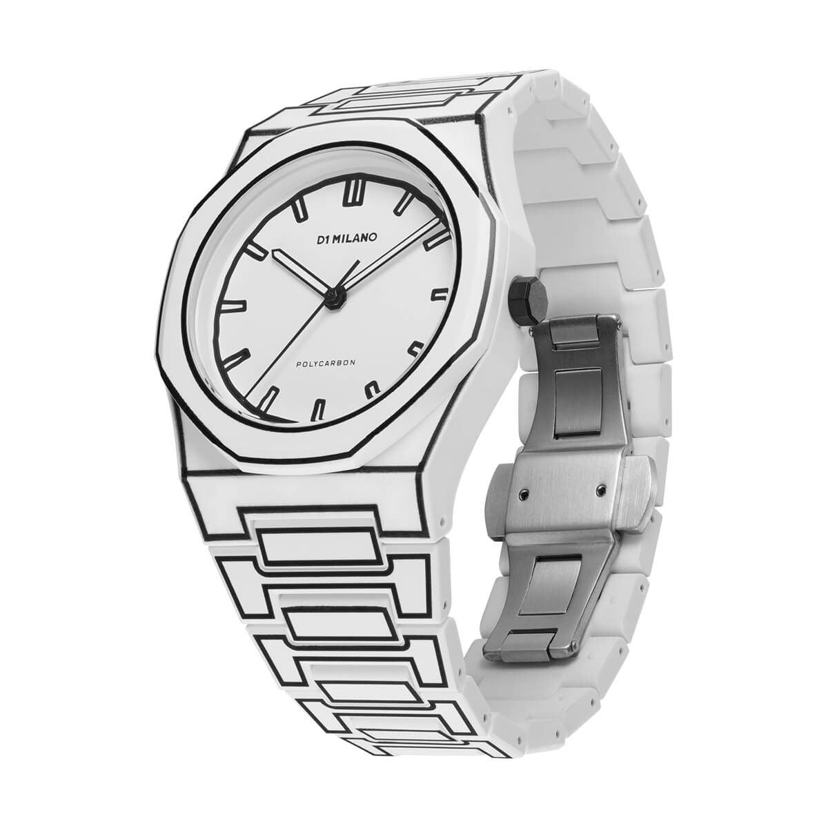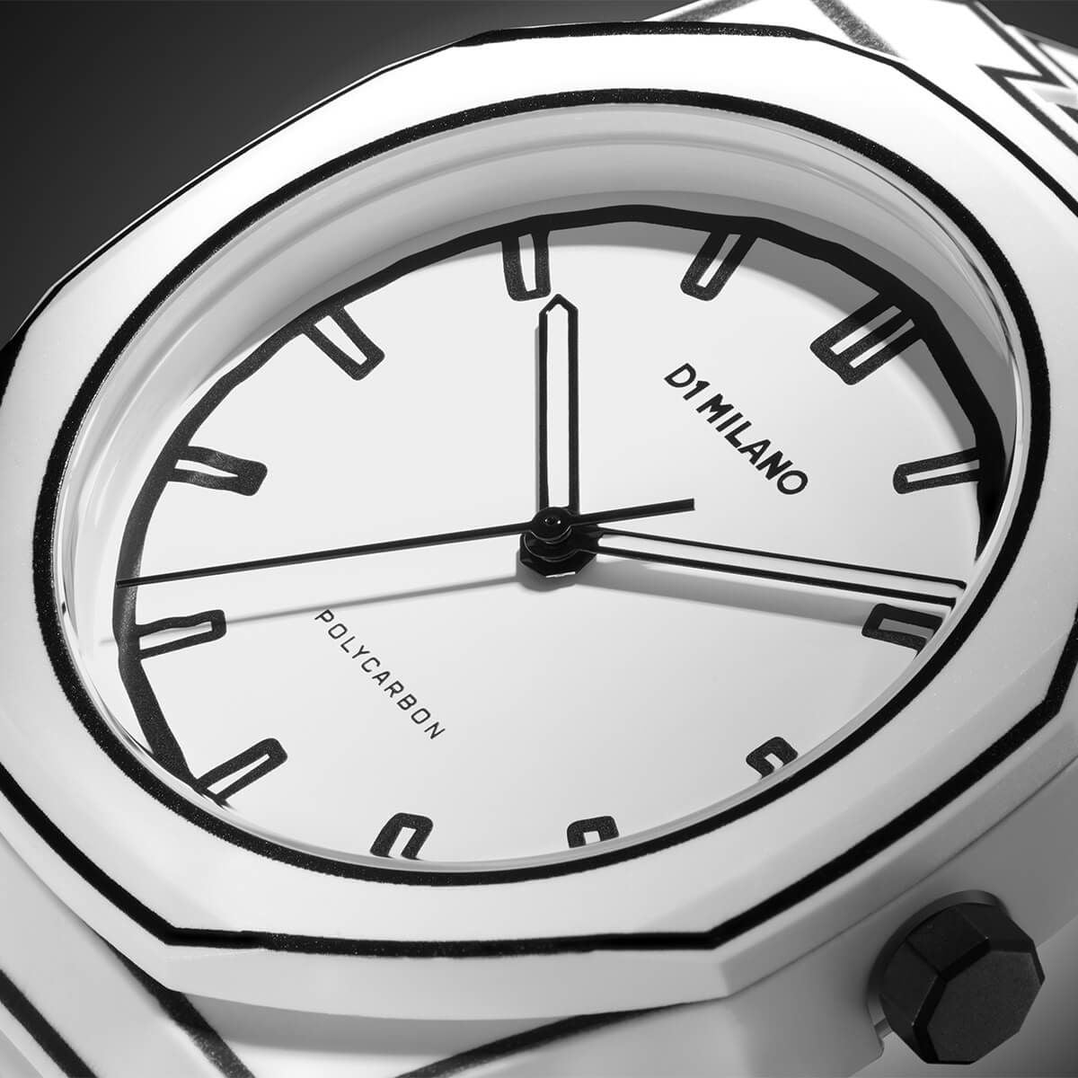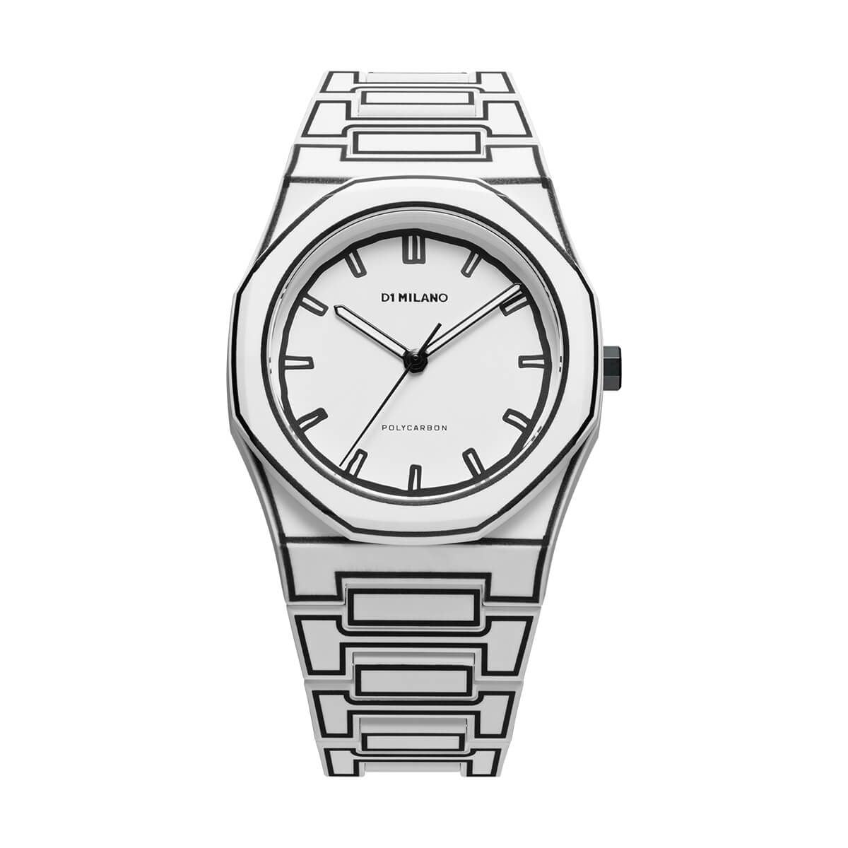 [D1 MILANO] ディーワンミラノ 腕時計 PCBJ34 < ユニセックス ラウンド アナログ クオーツ ポリカーボン ホワイトスケッチ 40.5mm ブラック ホワイト >