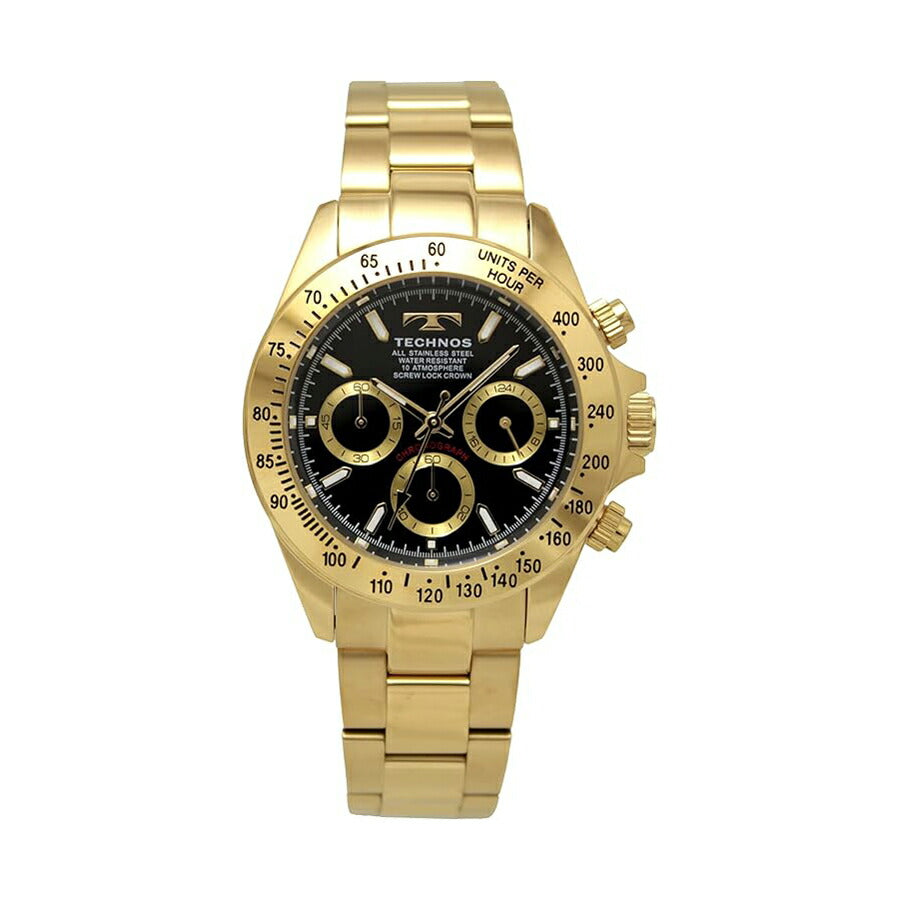 [TECHNOS] テクノス 腕時計 T4C01GB < メンズ ゴールド ブラック クロノグラフ 10気圧防水 >