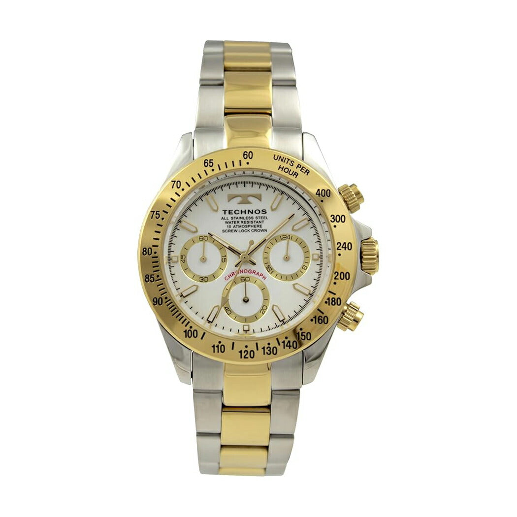 [TECHNOS] テクノス 腕時計 T4C01TW < メンズ シルバー×ゴールド ホワイト クロノグラフ 10気圧防水 >