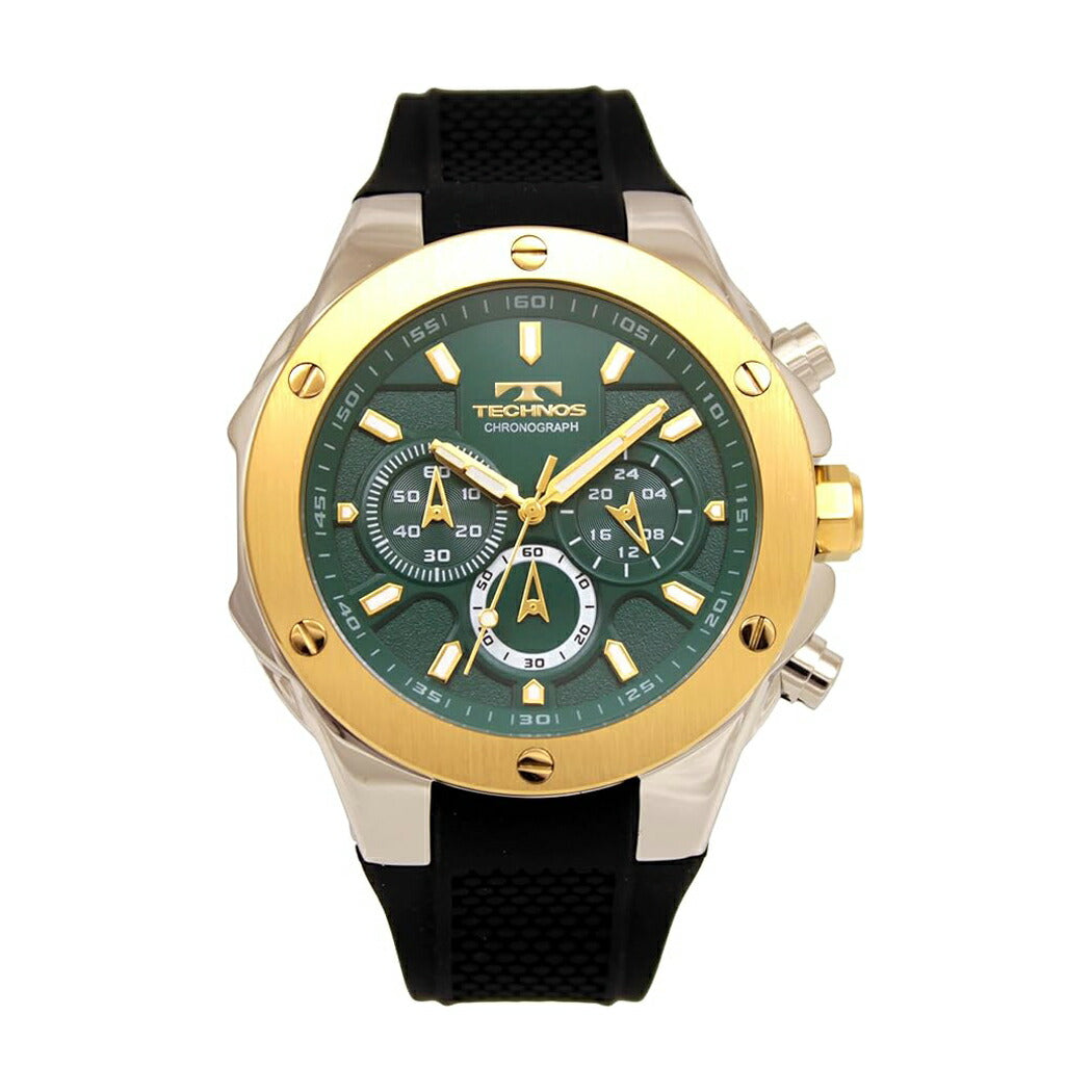 [TECHNOS] テクノス 腕時計 T6C22GM < メンズ ブラック グリーン クロノグラフ 5気圧防水 >