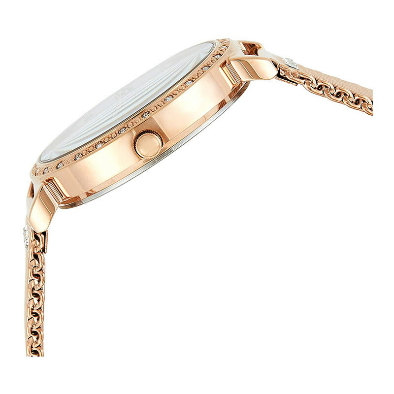 個性的なメッシュウォッチのストラップ両サイドには3つのクリスタルガラスとフルクリスタルガラスケースを採用、クラシックなデザインに輝きを加えたウォッチケース径34、風防は傷のつきにくい丈夫なミネラルガラスを使用
