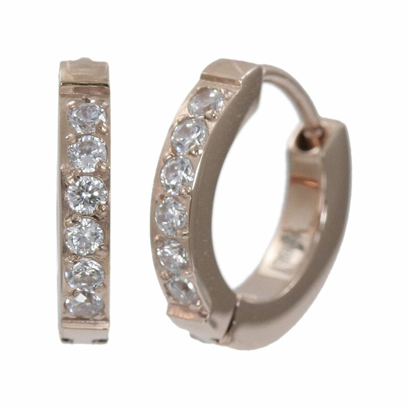 [Negozietto] ネゴツィエット ピアス W1S15Q6-N212PG < 低金属アレルギー ステンレス 316L フープ 平打ち 中折れ 6石CZ付 2mm×12mm ピンクゴールド >