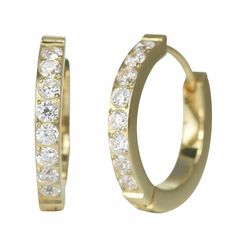 [Negozietto] ネゴツィエット ピアス W1S15Q8-N215G < 低金属アレルギー ステンレス 316L フープ 平打ち 中折れ 8石CZ付 2mm×15mm ゴールド >