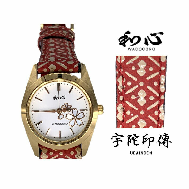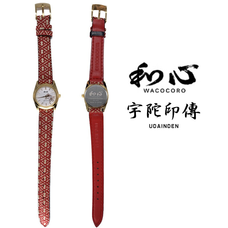 [WACOCORO] 和心 腕時計 宇陀印傳 UDAINDEN WA-001L-K < レディース 瓢箪 和柄 レッド ゴールド 日本製 >
