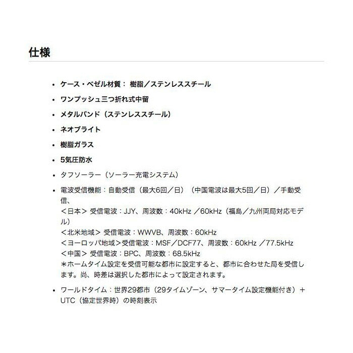 日本・中国・アメリカ・ヨーロッパの標準電波に対応したマルチバンド6のソーラー電波時計です。